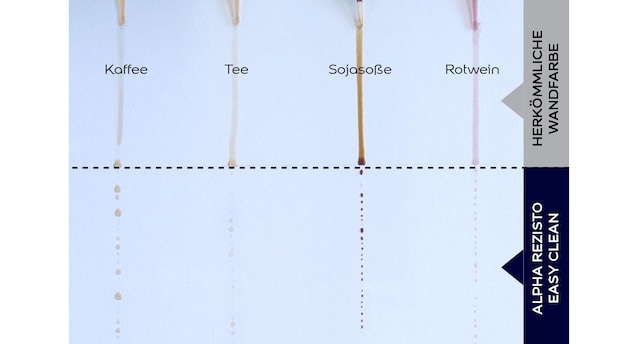 Ob in der Kantine, im Kindergarten, im Restaurant oder ganz einfach Zuhause: Wie schnell kann etwas Unvorhergesehenes passieren! Und wie gut, wenn die Wände jetzt mit der widerstandsfähigen Innenwandfarbe Alpha Rezisto Easy Clean beschichtet sind. Ihre einzigartige STAIN SHIELD TECHNOLOGY wirkt wie ein Schutzschild, ist schmutzabweisend und leicht zu reinigen. So perlen Kaffee, Cola, Ketchup & Co. einfach ab und haben keine Chance, sich für die Zukunft zu verewigen.