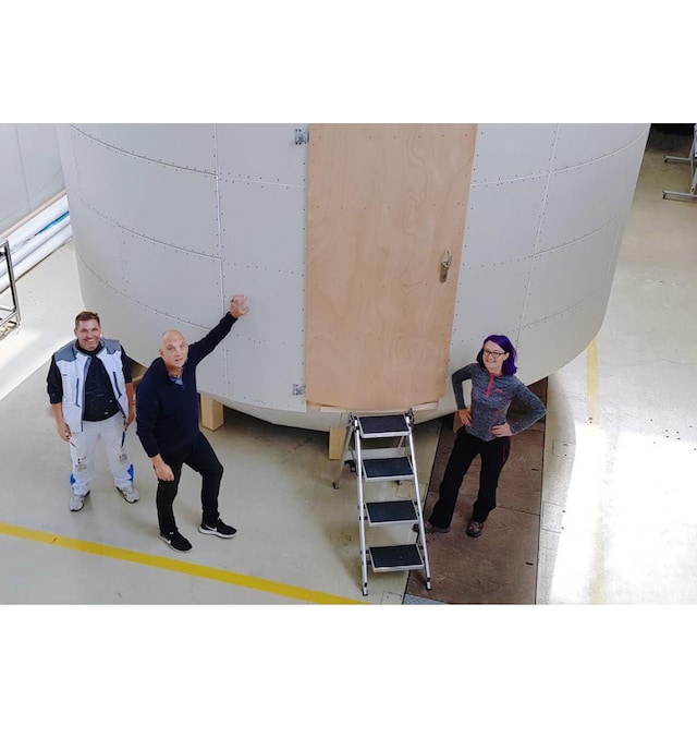 Während Maße und Ausstattung der 15 Quadratmeter großen, knapp sieben Meter hohen, zylinderförmigen Vorführversion exakt dem Modul entsprechen, das auf Mond oder Mars zum Einsatz kommen soll, wurden für den Bau des Prototyps jedoch Materialien aus dem konventionellen Innenausbau verwendet. So besteht die Außenhaut der Testversion aus herkömmlichen Gipskartonplatten. Um ihr eine spacige Alu-Optik zu verleihen, schlug Andreas Gieseke, Technischer Berater von AkzoNobel, Malermeister und geprüfter Sachverständiger, eine Beschichtung der Platten mit Alpha Metallic von Sikkens vor. Die wasserbasierte Effektbeschichtung zeichnet sich durch einen optimalen Verlauf, ein hohes Deckvermögen und eine lange Offenzeit aus.