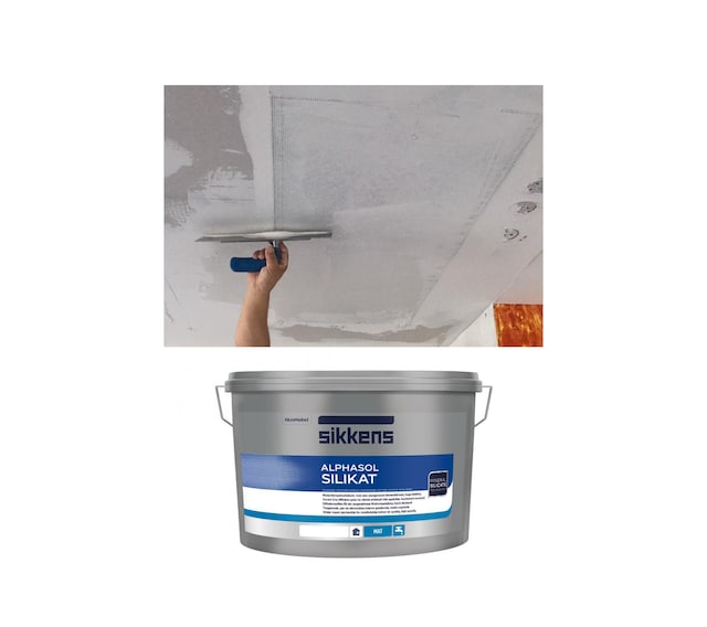 Nachdem der Planer des Heizungsherstellers den Heizbedarf und die erforderliche Fläche der Heizbahnen ermittelt hat, kommt der Maler zum Zuge. Zunächst trägt er überall dort, wo sich die Bahn später befinden soll, mit dem Zahnspachtel eine dünne Schicht Spachtelmasse auf. In diese bettet er das Heizgewebe ein und drückt sie mit dem Spachtel fest. Dann schließt der Elektriker die elektrischen Leitungen an die Steuerungstechnik an. Danach wird die Bahn zwei bis drei Millimeter dick mit Spachtelmasse bedeckt. Für die dekorative Schlussbeschichtung ist Alphasol Silikat von Sikkens die perfekte Wahl.