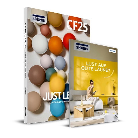 Deshalb haben wir nicht nur die Trendfarbtöne für das kommende Jahr ermittelt, sondern dazu auch die Broschüre »Lust auf gute Laune? Farbtrends 2025« gestaltet. Mit zahlreichen Vorher-Nachher-Bildern aus allen wichtigen Wohnbereichen öffnet sie den Blick für die Möglichkeiten der Trendfarben 2025 und macht Lust auf Veränderung. Damit ist sie ein ideales Instrument zur Kundengewinnung und -bindung. Denn die Broschüre könnt ihr euren Kunden zur weiteren Inspiration mit nach Hause geben.