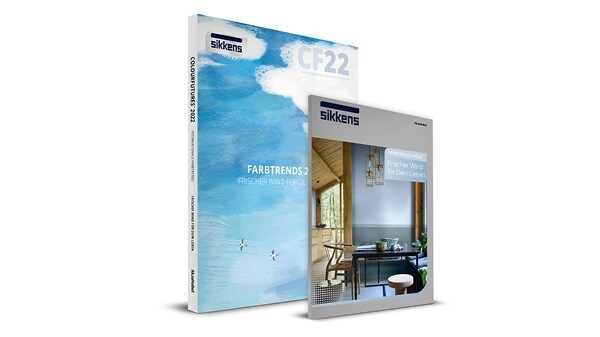 Lust auf mehr Informationen zu den ColourFuturesTM 2022? Das Trendbuch »CF22«, das wir zu den ColourFuturesTM 2022 herausgegeben haben, beschreibt ausführlich, wie und warum Farbvorlieben entstehen und welche Entwicklungen hinter den Trends sowie den dazu passenden Farben stehen. Das Buch enthält überdies zahlreiche Ambiente-Fotos und Vorher-Nachher-Aufnahmen, die zeigen, welche Kraft Farbe entfalten kann – und bieten euch Inspirationen für eine professionelle Farbberatung und -gestaltung. Viele von den stimmungsvollen Bildern finden sich auch in der Broschüre »Farbtrends 2022, Frischer Wind für Dein Leben« wieder, die euren Kunden viele Anregungen und Tipps für die farbige Neugestaltung ihres Zuhauses bietet und ideal für den Einstieg ins Kundengespräch ist. Das Trendbuch und die Broschüre könnt ihr im Sikkens-Shop bestellen.