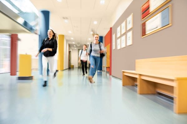 Wenn die Pause beginnt, füllen sich die Flure im Nu – eine echte Belastungsprobe für Wände und Oberflächen. Das Team Rezisto mit der stoßunempfindlichen Innenwandfarbe Alpha Rezisto Anti-Marks, der schmutzabweisenden Farbe Alpha Rezisto Easy Clean und dem robusten Innenlack Rubbol BL Rezisto Satin/ Mat/ Spray hält der täglichen Herausforderung stand: ideal für stark frequentierte Bereiche wie Schulflure, Klassenzimmer oder Treppenhäuser.
