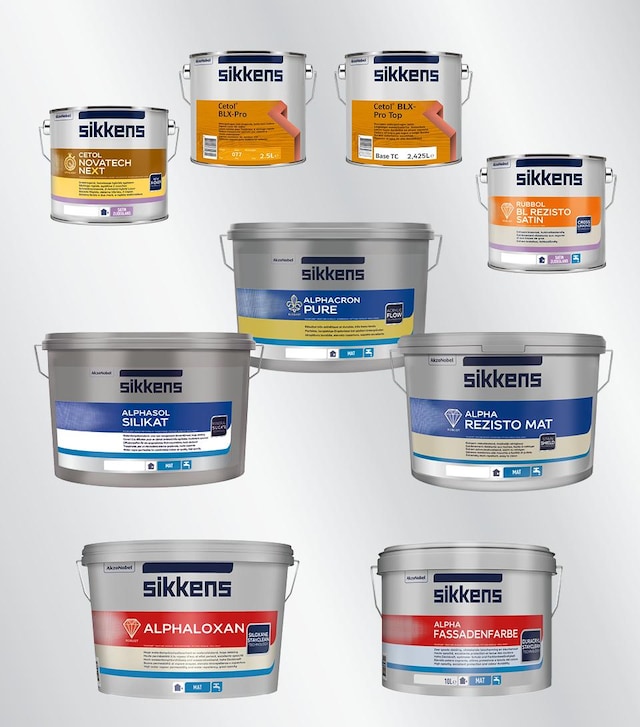 Die Entwicklung nachhaltiger Produkte ist bei Sikkens seit Langem Programm. „Wie kann man die Produkte noch besser machen, wie den gesetzlichen Anforderungen genügen, wie dem Maler das Tagesgeschäft vereinfachen und ihn dabei unterstützen, seine Arbeitszeit effizient einzusetzen und perfekte Ergebnisse zu erzielen?“, bringt Stefan Klinker die Treiber der Produktentwicklung auf den Punkt. Die Profi- Marke Sikkens hat in den vergangenen Jahren auf dem deutschsprachigen Markt sowohl im Bereich Farben als auch bei den Lacken und Lasuren eine Reihe von neuen Produkten eingeführt, die hinsichtlich Materialverbrauch und Haltbarkeit neue Maßstäbe setzen. Bei den Wandfarben sind es Alpha Rezisto Mat, Alphasol Silikat, Alphacron Pure, bei den Lacken der wasserverdünnbare Rubbol BL Rezisto Satin mit Cross- Linking-Technologie und bei den Lasuren die Hybridlasur Cetol Novatech neXt und die wasserverdünnbaren Produkte Cetol BLX-Pro und Cetol BLX-Pro Top. Nicht zu vergessen die verbesserten Fassadenfarben Alphaloxan und Alpha Fassadenfarbe mit neuer STAYCLEAN-Technologie, mit der Fassaden länger sauber bleiben, schneller trocknen und hochfarbtonbeständig sind.