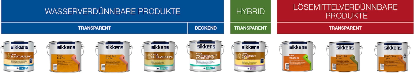 Die Bewertung der Holzqualität und die Auswahl der Beschichtung erfolgt auf der Basis des optisch erkennbaren Zustands des Holzes. Dabei sind Euer Urteilsvermögen, Eure Fachkompetenz und Eure Erfahrung gefragt. Das Resultat der Bestandsaufnahme entscheidet über den optimalen Beschichtungsaufbau und die Vorbereitung des Untergrundes. Mit den lösemittelbasierten Lasuren Cetol Novatech, der Hybridlasur Cetol Novatech neXt, Cetol HLS Extra, Cetol Filter 7 Plus, Cetol Wetterschutzfarbe Extra und mit den wasserverdünnbaren Produkten Cetol BLX-Pro, Cetol BLX-Pro Top, Cetol BL Silvershine und Cetol BL Natural Mat stellen wir Euch leistungsstarke Lasurensysteme zur Verfügung, mit denen Ihr Euren Auftraggebern jeweils den optimalen Holzschutz bieten könnt.