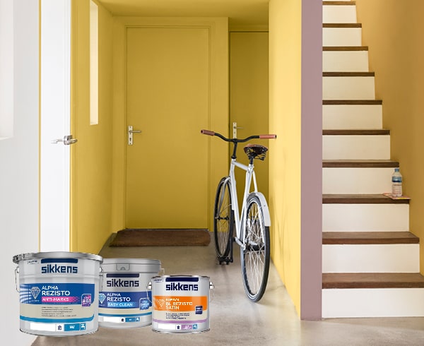 Kommen Kunden ins Haus, könnt Ihr stark beanspruchte Bereiche wie Flure mit Farbe nicht nur verschönern, sondern sie auch schützen. Die widerstandsfähigen Innenwandfarben Alpha Rezisto Easy Clean und Rezisto Anti-Marks bilden das Team Rezisto für beanspruchte Räume. Alpha Rezisto Anti-Marks reduziert mit SCUFF SHIELD TECHNOLOGY deutlich die Spuren von Schrammen und Abrieb. Alpha Rezisto Easy Clean mit STAIN SHIELD TECHNOLOGY wirkt wie ein Schutzschild, ist schmutzabweisend und leicht zu reinigen. So perlt Schmutz einfach ab. Auch Fußleisten zeigen schnell Gebrauchsspuren – der Anti-Kratz- Lack Rubbol BL Rezisto Satin deckt hervorragend, ist extrem stoßbeständig sowie resistent gegen Schmutz, Fett und Handschweiß.