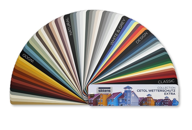 Die 60 Holzfarbtöne wurden mit großem Trendgespür ausgewählt und in die Bereiche Classic, Nature und Architecture eingeteilt. CLASSIC steht für klassische Holzfarbtöne, NATURE für von der Natur inspirierte Farbtöne und ARCHITECTURE für eine Auswahl an feinen Grauabstufungen. Die Farbmuster sind zweigeteilt und kombinieren jeden lasierenden Farbton mit dem entsprechenden deckenden Farbton aus dem Sikkens 5051 Color Concept. Die Cetol Colours Karte beinhaltet die gleichen 60 Holzfarbtöne wie der Cetol Colours Fächer. Auch hier sind die Muster zweigeteilt und präsentieren zu jedem lasierenden Farbton den passenden deckenden Farbton.